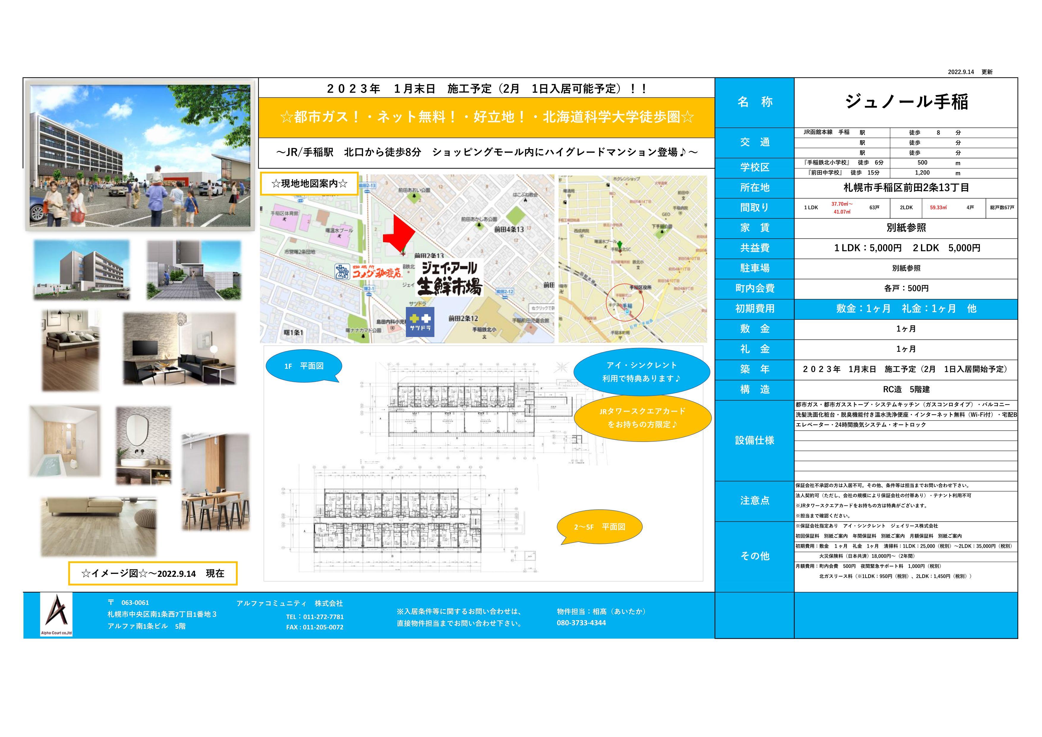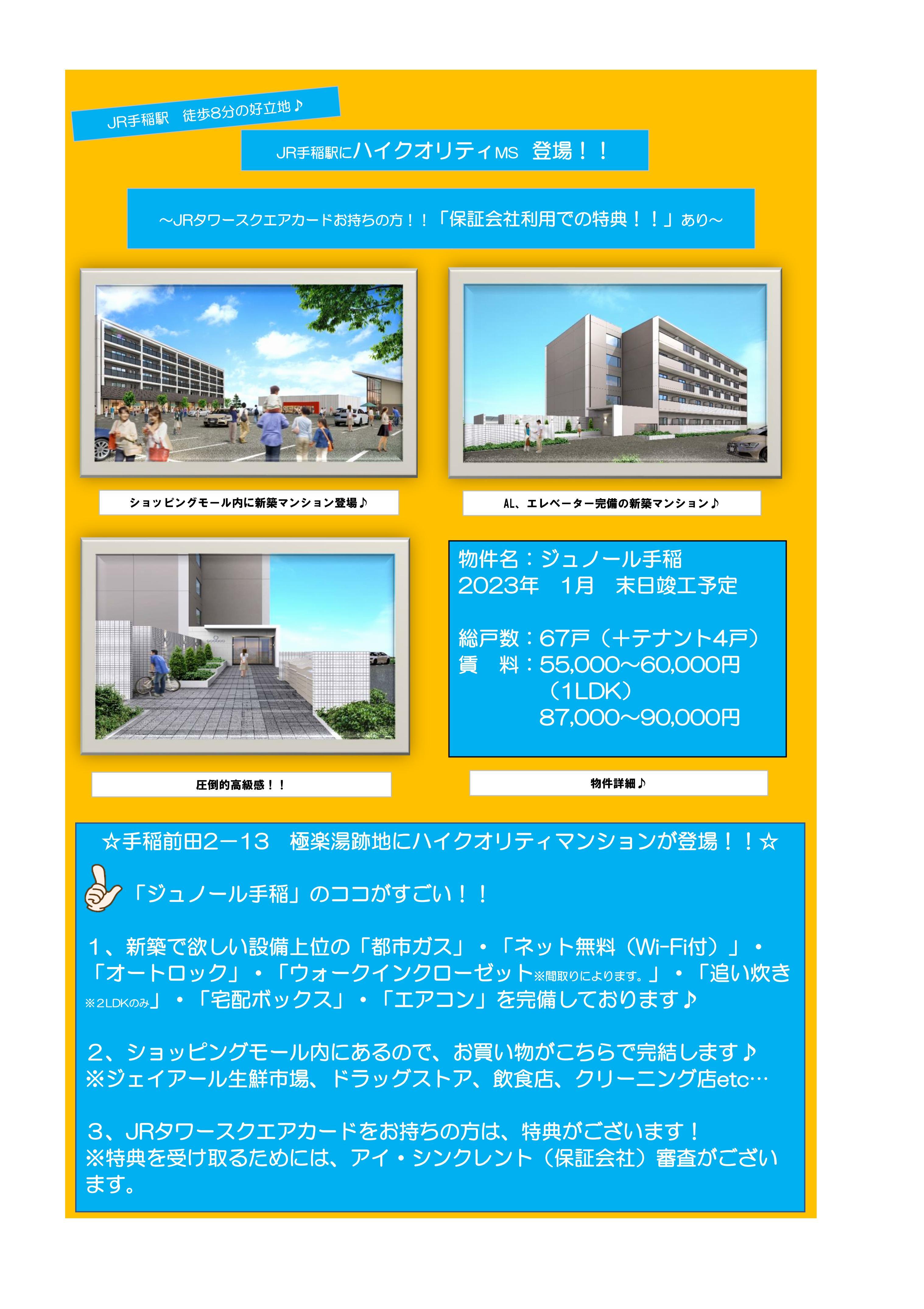 ☆手稲前田2-13 極楽湯跡地にハイクオリティマンションが登場!!