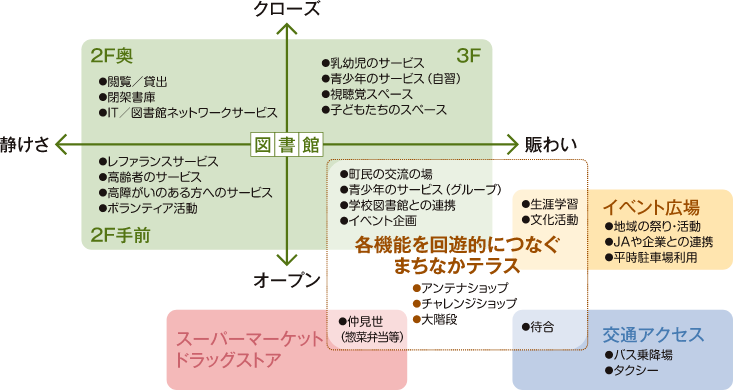 このプロジェクトの目的は「賑わいの再生」です。そのためには「そこへ行こう」という動機をつくる必要があります。行政や金融機関、商店などへの日常の用事やサービスのためだけでなく「用がなくても行きたくなる場」、それが「まちなかテラス」です。